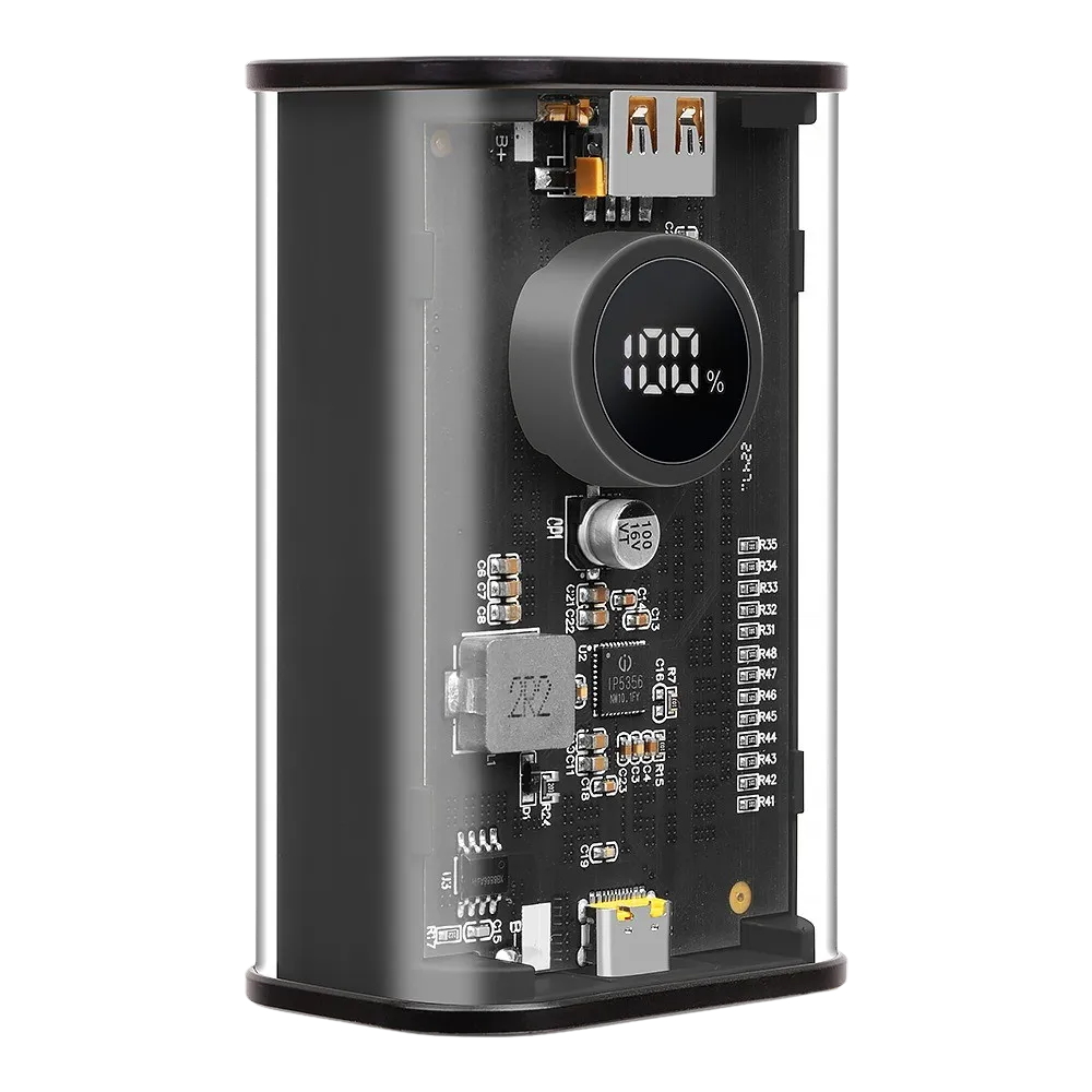 Sklo to není, ale průhledné to je. Tělo powerbanky je tvořeno velmi odolnou průhlednou skořepinou, navrženou tak,