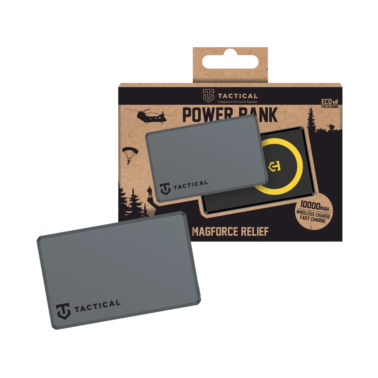 TACTICAL MAGFORCE RELIEF 10000mAh Bojová energie na cesty, to je Tactical MagForce Relief. Nyní s dvounásobnou kapacitou. Parťák na cesty s kapacitou 10000mAh a funkcí podpory bezdrátového nabíjení. Tvůj extra arzenál energie pro zdolání tvrdých terénů přírody i nejdivočejšího dobrodružství velkoměst. Když se situace stíží, Tactical MagForce Relief tě podrží s dostatečnou energií. DVOJITÁ KAPACITA Nyní s kapacitou 10000mAh je tato bezdrátová powerbanka tvým spolehlivým parťákem, který zajistí extra šťávu pro tvoje zařízení. 15 mm tloušťka s váhou pouhých 196 g. Jo, slyšíte správně! Vejde do tvého batohu nebo do kapsy, aniž by přidával jakoukoli zátěž. LITHIUM ION CELL Ve srovnání s tradičními bateriemi, Tactical MagForce Relief má v sobě novou generaci lithium-iontových článků, které se nabíjejí rychleji, vydrží déle, mají vyšší energetickou hustotu a jsou lehčí. Nemusíš je úplně vybít, abys šetřil jejich životnost. Baterie počítá cykly a sčítá procenta. Takže powerbanku můžeš dobít kdykoliv. Mysli takticky! PEVNÁ SKOŘEPINA Vyrobený z odolného hliníku, testovaného gumového povrchu a ABS, MagForce Relief je navržen tak, aby vydržel drsné podmínky přírody nebo dobrodružství velkoměst. Ať už šplháš po horách nebo procházíš hustým lesem, Tactical MagForce Relief je stejně odolný jako tvoje dobrodružství. C NABIJÍ, BEZDRÁT SDÍLÍ MagForce Relief od Tactical je vybaven jedním USB-C portem a bezdrátovou nabíjecí podložkou. Umísti podložku na zařízení s funkcí MagSafe nebo bezdrátového nabíjení a nabíjení začne automaticky. USB-C port může sloužit jak pro nabíjení, tak pro dobití. Mysli takticky! UKAZATELE Velikost je prioritou! Proto je tato powerbanka vybavena zabudovaným ukazatelem stavu energie, který ti rychle ukáže, kolik energie zbývá nebo jak dlouho budeš ještě nabíjet. RYCHLE A RYCHLEJI Tenhle kámoš je opravdu rychlý a nabije tvůj iPhone z 0 na 80 % do 45 minut. OCHRANA x9 Přebití, nadměrné vybití, přepětí, proudová ochrana, napájení, přehřátí, elektromagnetické pole, zpětný chod, zkrat. To vše má powerbanka pod kontrolou. Přesná struktura obvodu zajišťuje záruku kvality! NEODOLATELNĚ ODOLNÝ U nás v Tactical dbáme na to, aby věci něco vydržely. Proto powerbanka v této kategorii nabízí jen to nejlepší. Při výrobě jsme použili velice odolné materiály, vybrali výkonné a spolehlivé bateriové články a aplikovali nejnovější technologie pro co nejdelší životnost a uživatelskou spokojenost. I proto se na tento kryt vztahuje program doživotní záruky.* Viz podmínky programu doživotní záruky Tactical. BE ECO My v Tactical máme rádi přírodu. Všechny naše produkty jsou balené do ECO krabiček z recyklovaného papíru tak, aby co nejméně zatěžovaly životní prostředí. Mysli takticky!